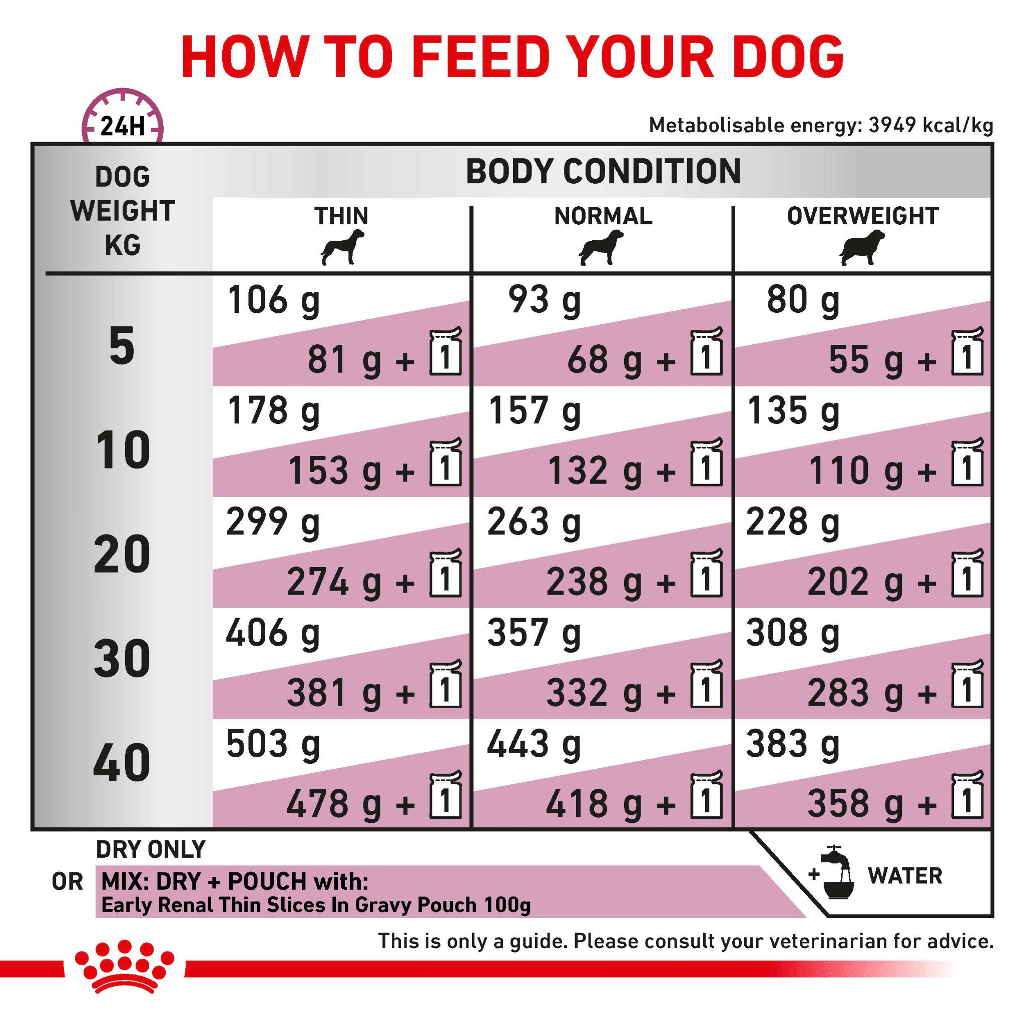 ROYAL CANIN® Early Renal is also available as a wet food product with thin slices in gravy. If your dog enjoys a mixed diet of wet and dry food, be sure to follow the on-pack feeding to ensure a healthy daily food intake for your dog. ROYAL CANIN® Early Renal Veterinary diets are specially formulated to support dogs in the early stages of Chronic Renal Insufficiency. Each one of our unique formulas contains specific nutrients to provide your dog with a complete and balanced diet.