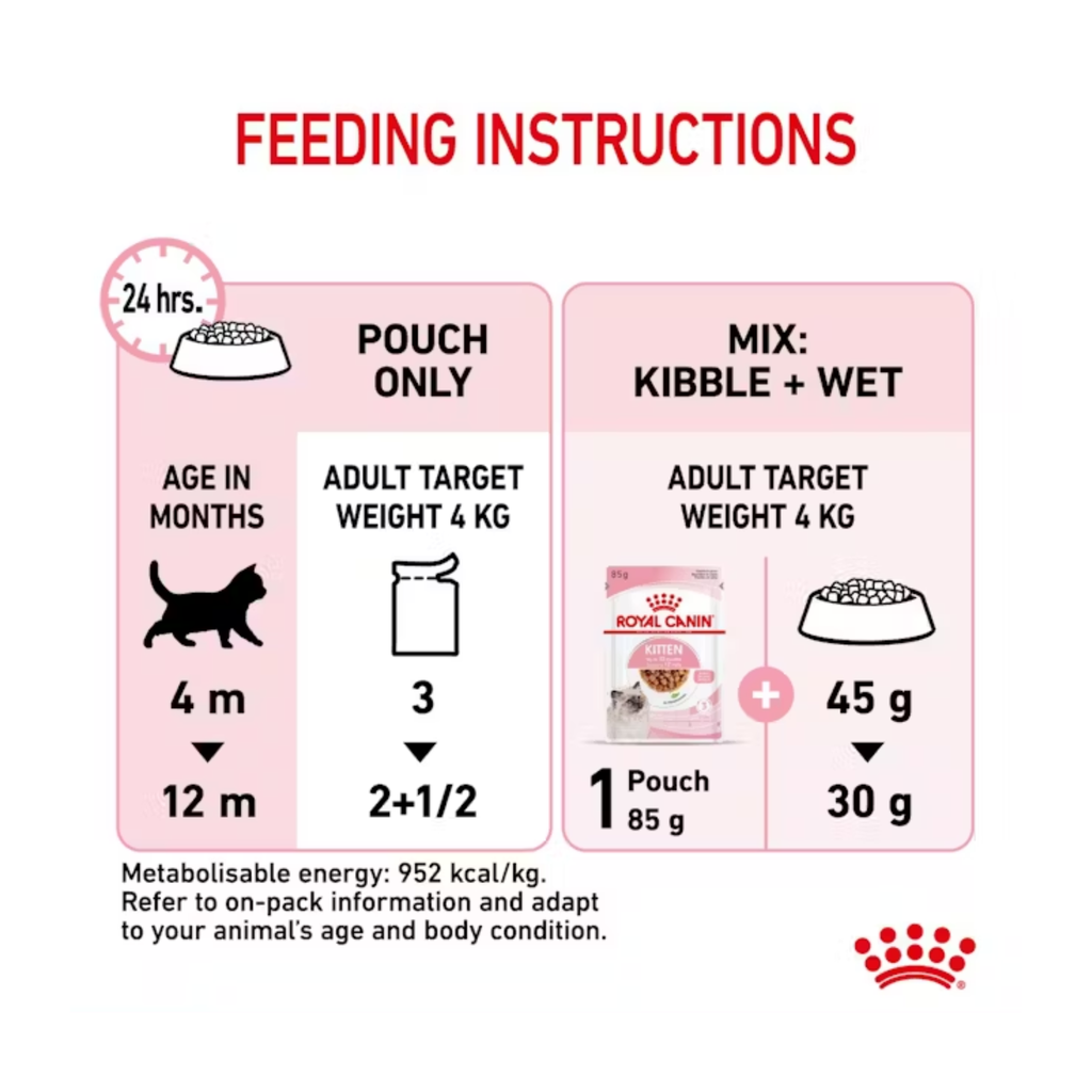 ROYAL CANIN® Kitten (in Gravy) has been created to satisfy the most discerning feline palate. This wet food offers your kitten a positive sensory experience, supports healthy hydration and is perfect for mixed feeding with the ROYAL CANIN® Kitten dry kibble diet.