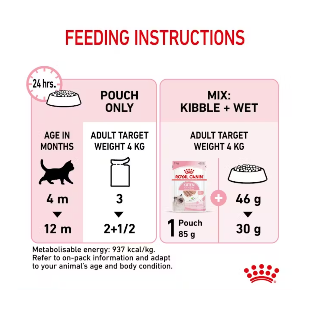 - Brain development - Enriched with an omega-3 fatty acid (DHA) to support the kitten’s brain development and healthy vision.