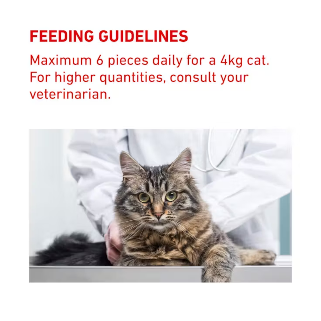 We recommend following the on-pack feeding guide so as not to exceed your cat's recommended daily intake. Quantities of your cat's main diet may need to be adjusted with the help of your veterinarian, depending on the number of Pill Assist pieces given per day.
