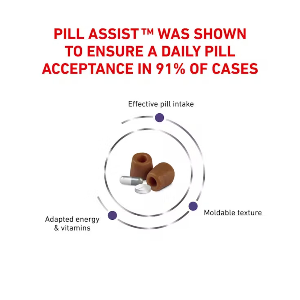 Storage: ROYAL CANIN® Pill Assist should be stored at room temperature, in a dry place, and in its original packaging (tightly closed). It is not recommended to keep a pack opened for longer than one month.