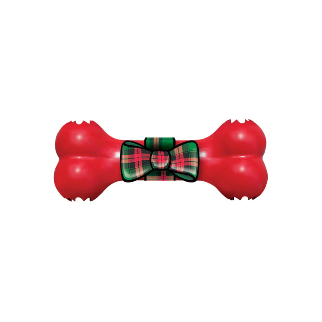 This festive KONG Goodie Bone™ toy engages dogs that delight in chew sessions!