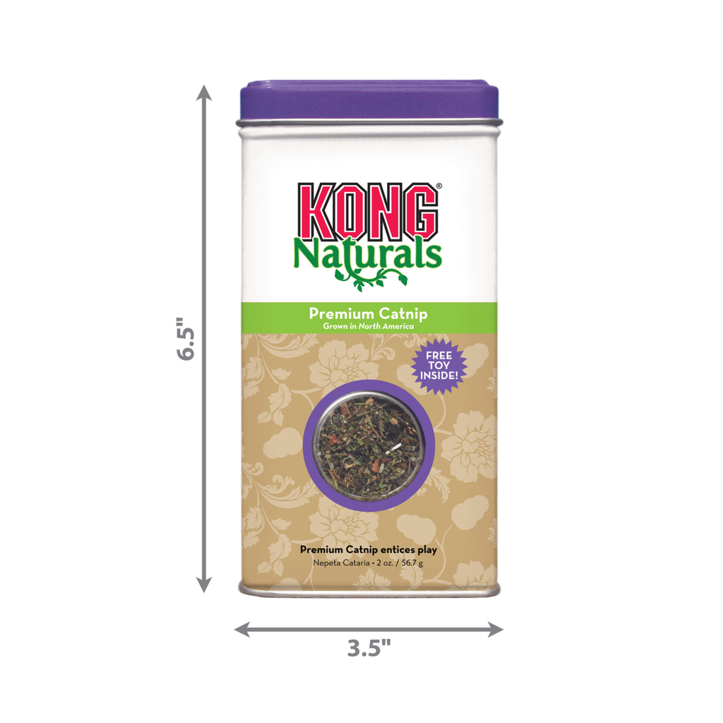 KONG Naturals Premium North American Catnip stays fresh in a handy, resealable portable tin. Use as a standalone treat, to refill KONG toys and to sprinkle on toys and scratchers for a pinch of happiness and to encourage appropriate scratching behaviour.