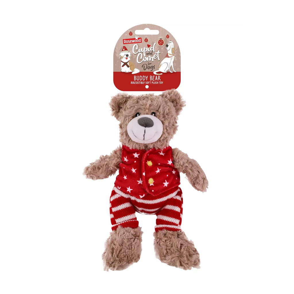 Made from super soft plush material, Buddy Bear is ideal for cosy cuddles and soft play, while the hidden squeaker inside adds an extra layer of fun for your dog. Whether for snuggling or festive playtime, Buddy Bear is sure to bring joy to your pet this holiday season!
