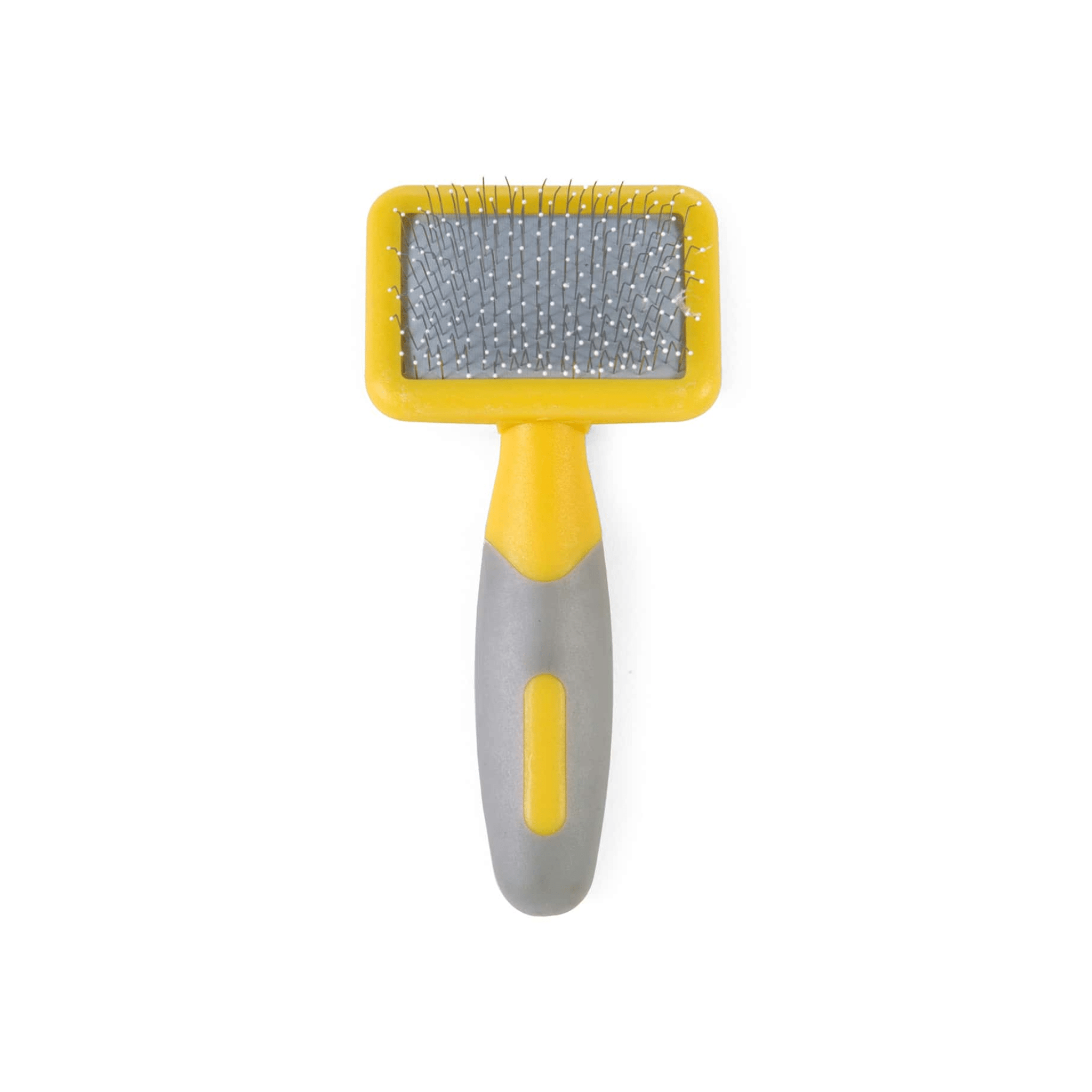- Thin pins penetrate the coat, gently easing tangles