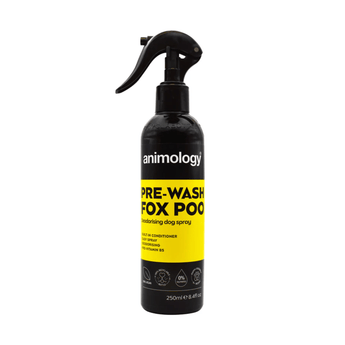 Pre-Wash Fox Poo, by Animology, is a unique pre-wash spray specifically designed to help initiate the breakdown and neutralisation of unpleasant odours caused by your dog's encounters with faeces, dead fish, and other repugnant substances.