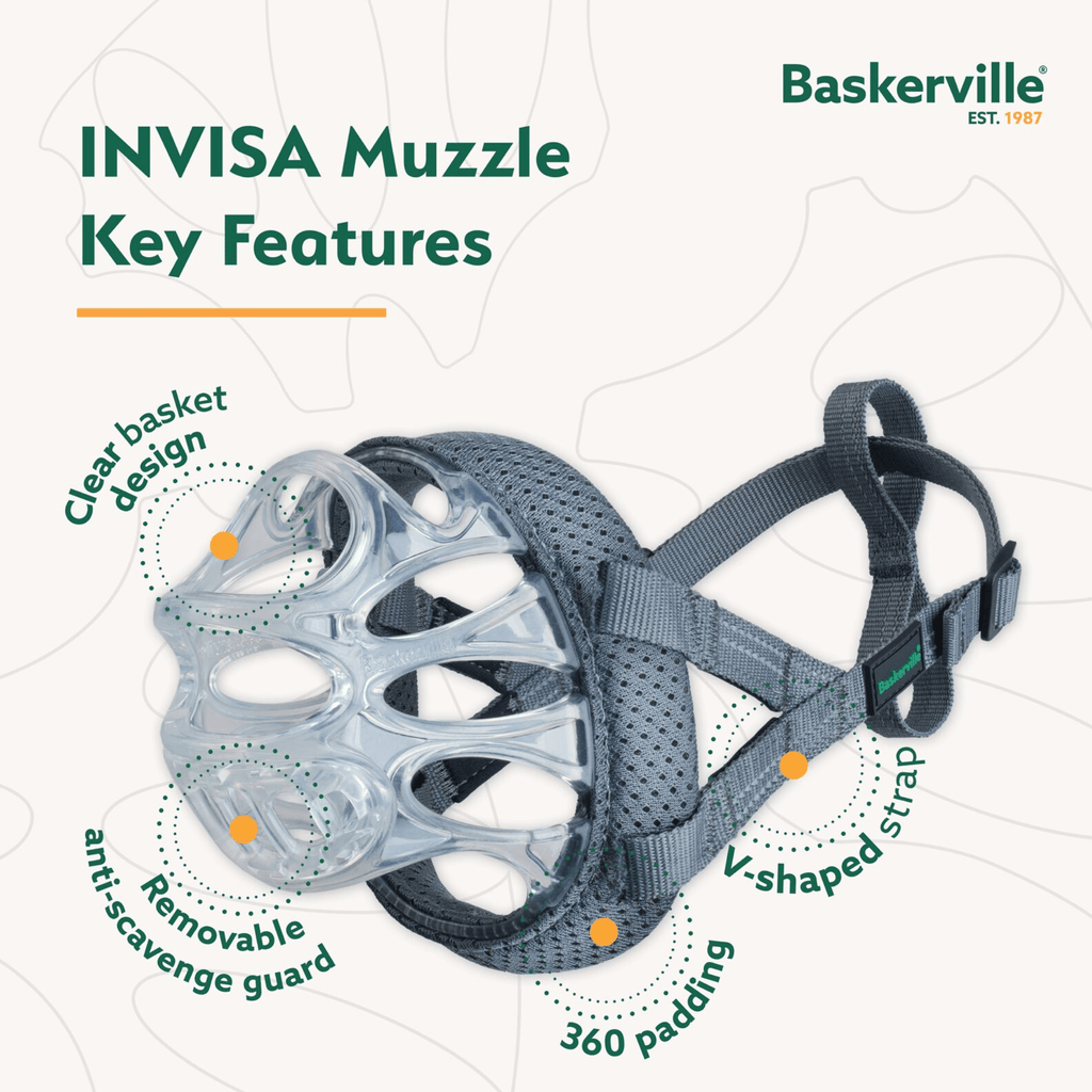 Introducing INVISA, the next generation of basket muzzle, designed to empower owners to confidently walk their dogs in public, providing peace of mind for safety and comfort with a transparent design that reduces the stigma associated with traditional muzzles. Crafted from durable thermoplastic rubber (TPR), INVISA redefines the basket muzzle with advanced features prioritising functionality and canine well-being.