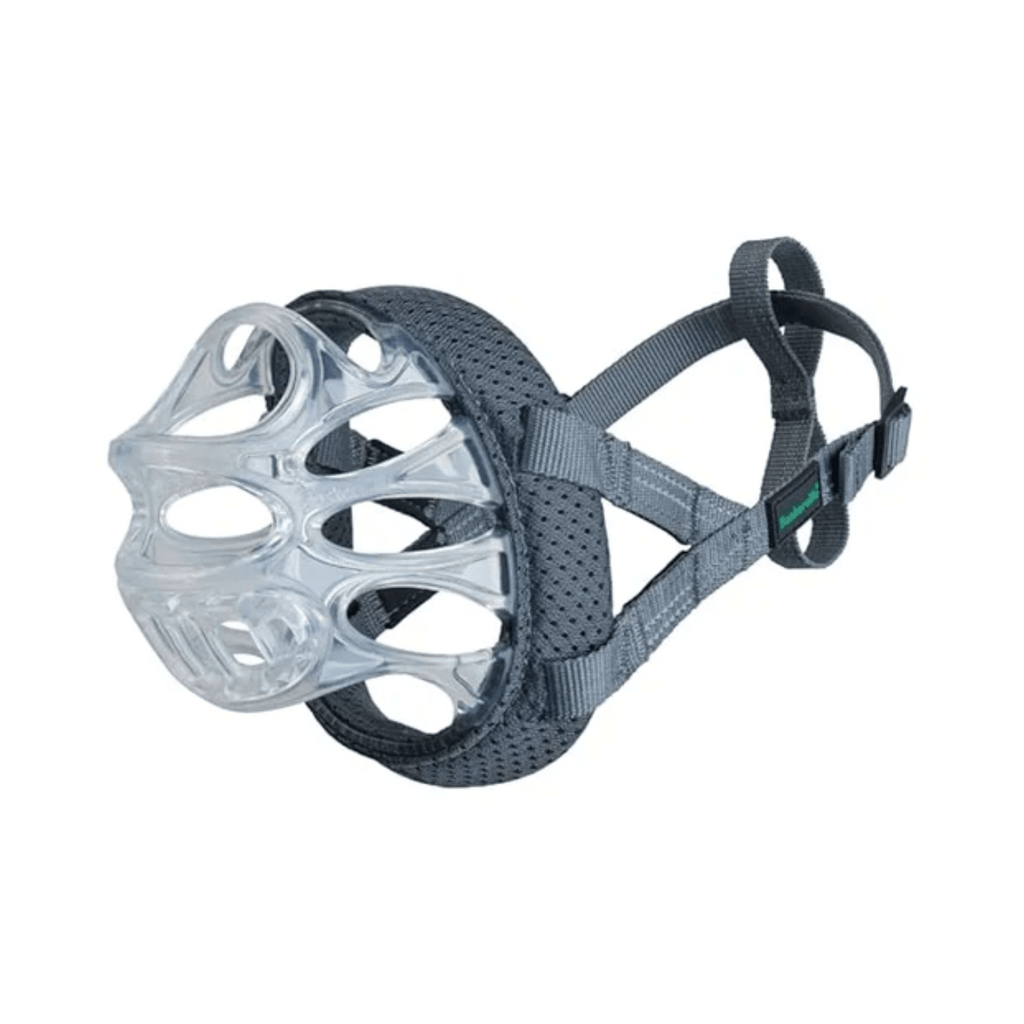 - Anti Scavenging - 1/4 of muzzle usage is to prevent food scavenging, eating rocks or coprophagia. This muzzle is specially designed with an additional guard insert to prevent scavenging of food and wildlife.