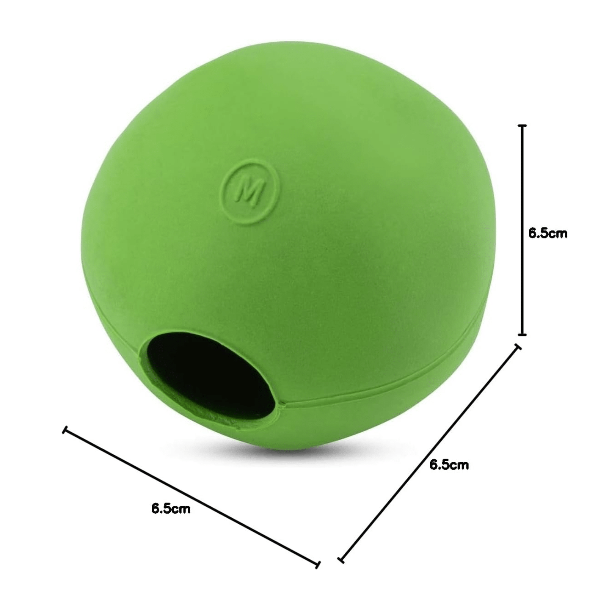 A durable hollow dog ball made from bouncy natural rubber. The bright colours are extra visible for humans and dogs in flat light. Natural rubber is tough and hardwearing so it won’t let you down in a game of fetch.
