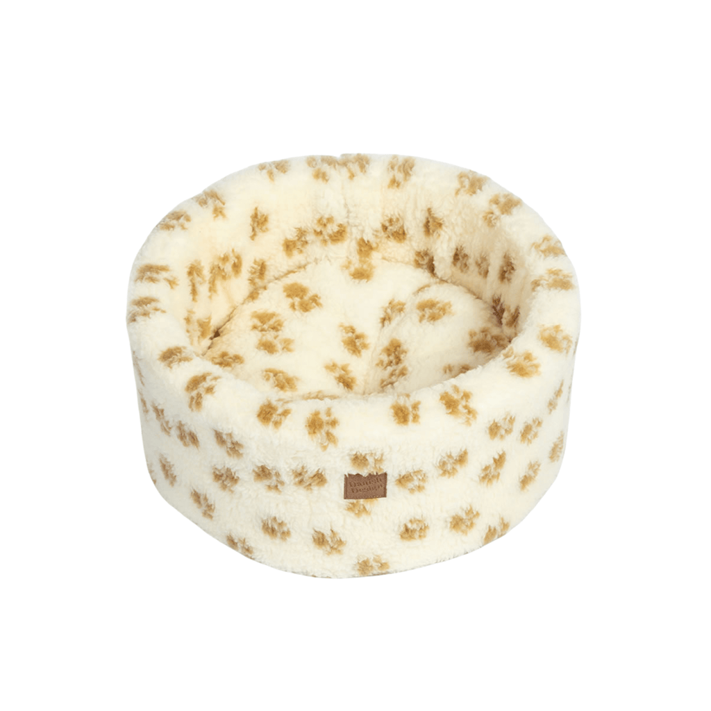 Knitted in the UK, the fluffy fibres of this Sherpa fleece create an extremely soft and snuggly sleeping experience, with a soft cream background and subtle paw print motif.
