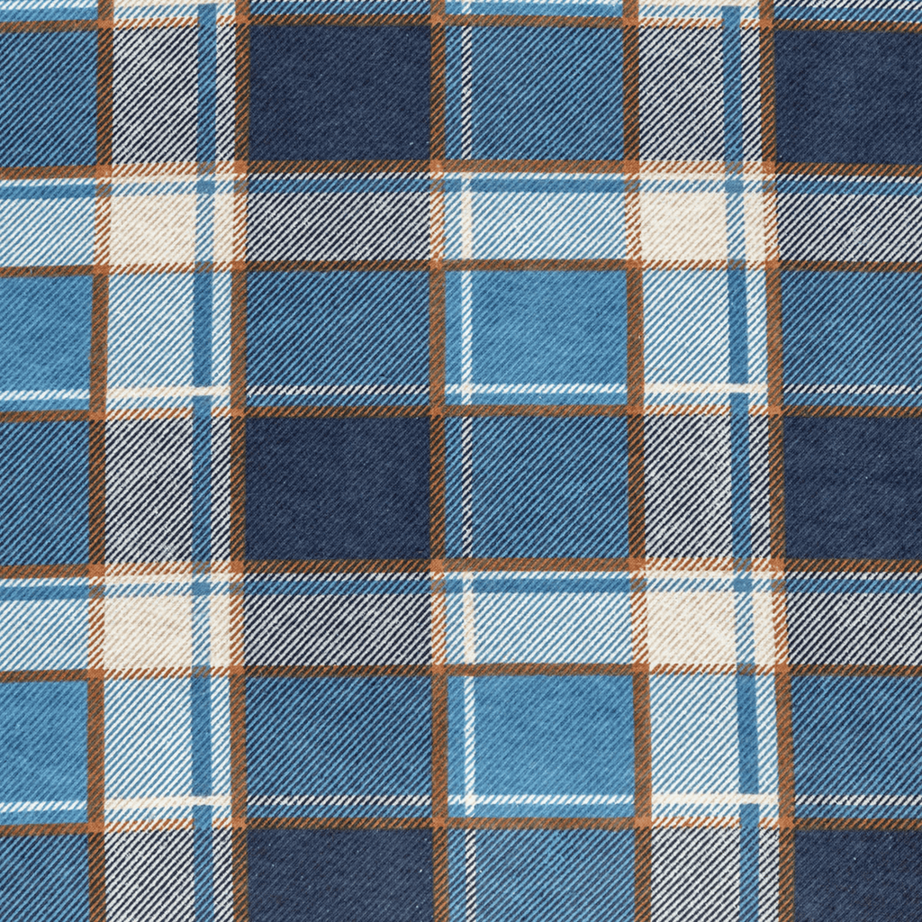 A check design with tones of blue and a highlight of mustard, is printed on 100% brushed cotton, and paired with a soft dark grey Sherpa fleece. The Sherpa fleece is knitted in the UK and made from 100% recycled fibres, formed from recycled plastic bottles. FatFace cotton products supports more sustainable cotton farming.
