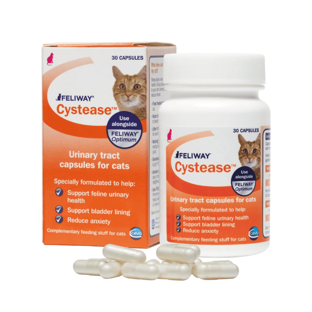 Feliway Cystease is a specifically formulated oral supplement designed to help cats who have developed stress-induced bladder issues.