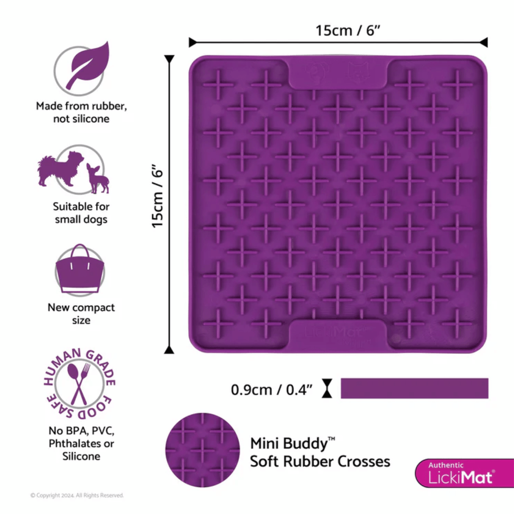 With its criss-cross Buddy™ texture, the Mini Buddy™ is perfect for spreading soft foods like yoghurt, peanut butter, purees, or wet meals. The smaller size makes it ideal for puppies and small breeds, turning mealtime into a calming enrichment activity that helps reduce anxiety and boredom while supporting oral health and better digestion.