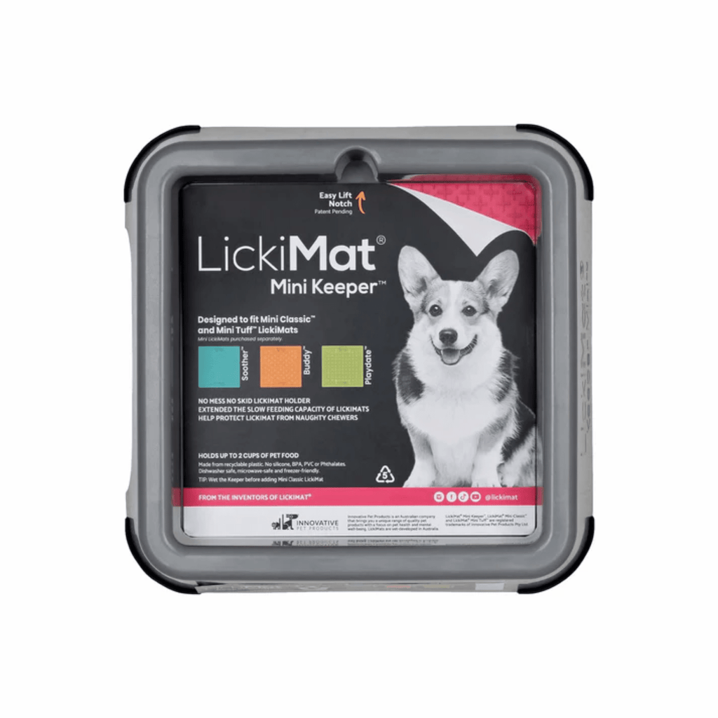 Designed to secure your Mini LickiMat® in place, the Mini Keeper™ prevents sliding, stops pets from chewing the edges, and makes enrichment sessions last longer. It also doubles as a heavy-duty slow feeding bowl on its own, giving you two functions in one — all sized perfectly for kittens, puppies, and small dogs.