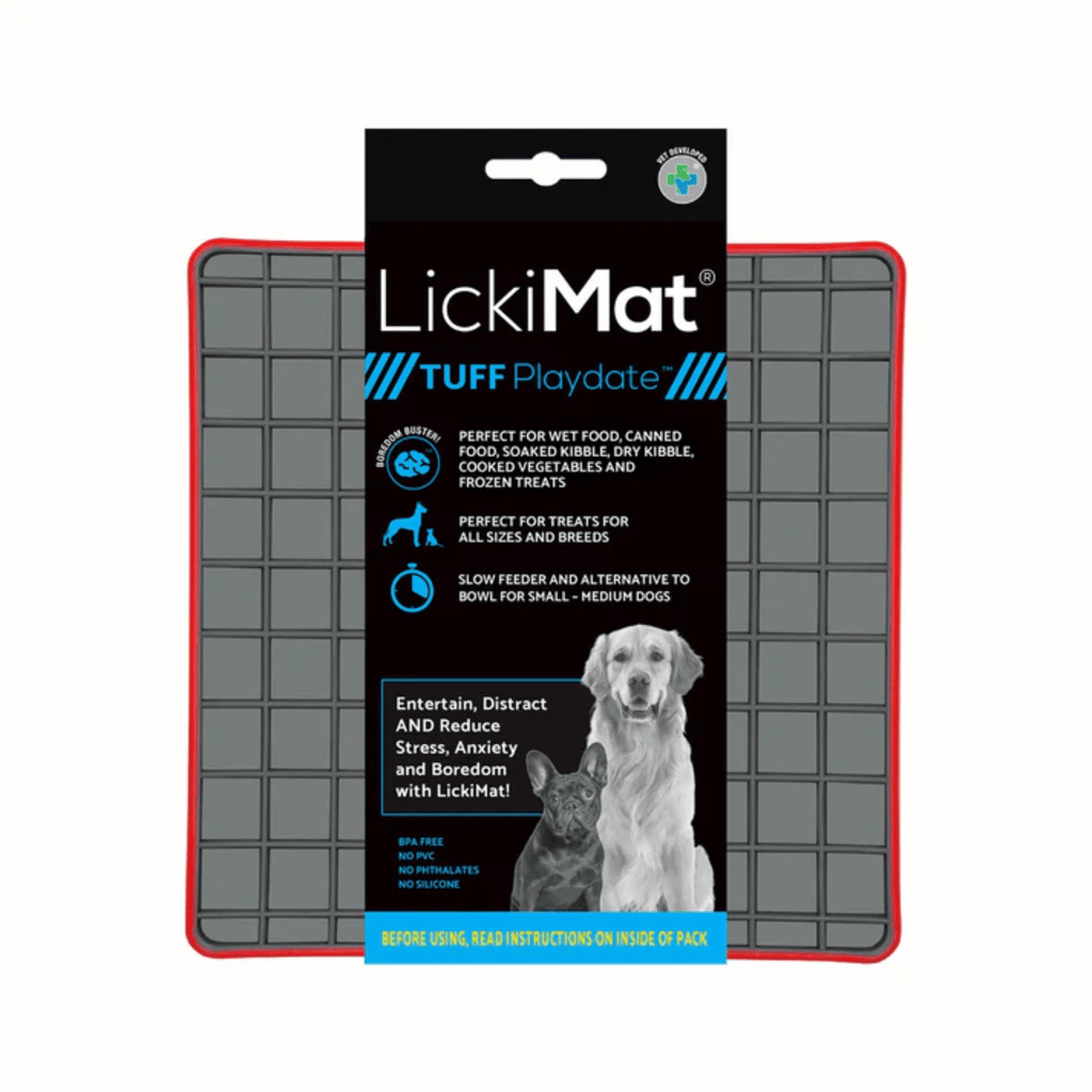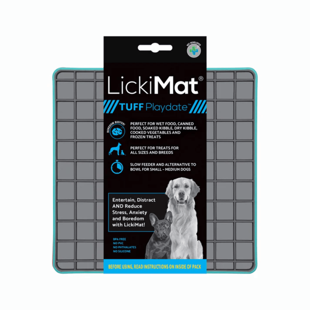 The LickiMat® Tuff Playdate™ – a durable, chew-resistant slow feeder lick mat for dogs.