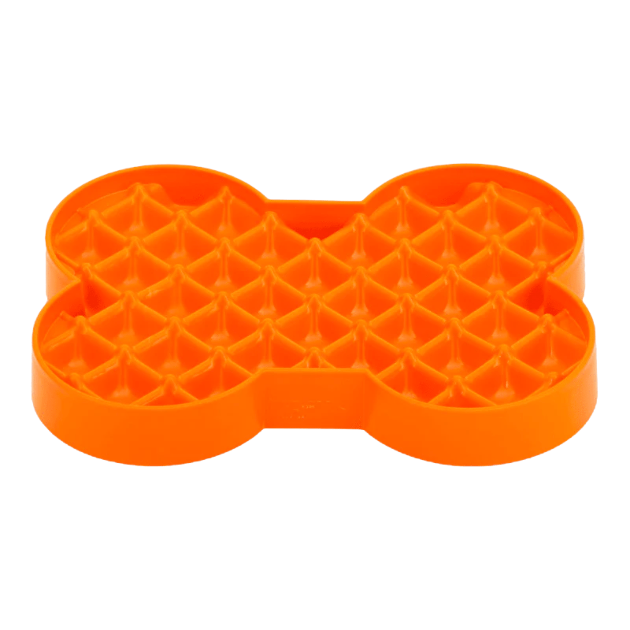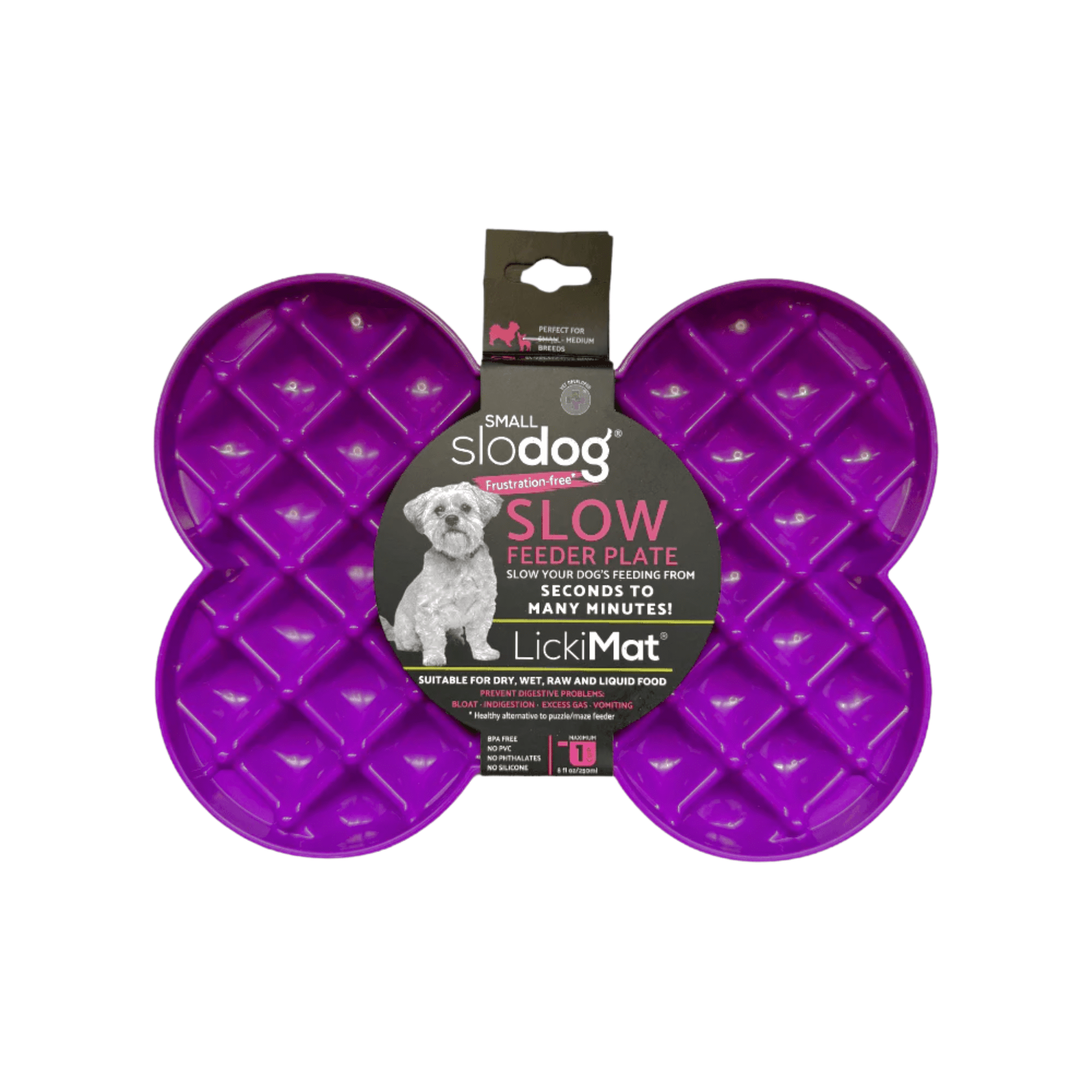 The Hyper Pet SloDog Slow Feeder™ plate is a unique approach to slow feeding and anti gulping meal time. Most slow feeders work by adding obstructions or maze like structures that make it difficult and confusing for dogs to chase and try to access their food, causing stress and anxiety. SloDog provides much more surface area accessibility for slower feeding, enabling your dog to see and access food easily. Food does not have to be chased, avoiding unnecessary frustration. SloDog is designed to split your pets’ meal into multiple mini meals by spreading the measure over lots of small shallow pockets, preventing gulping and extending feeding time.