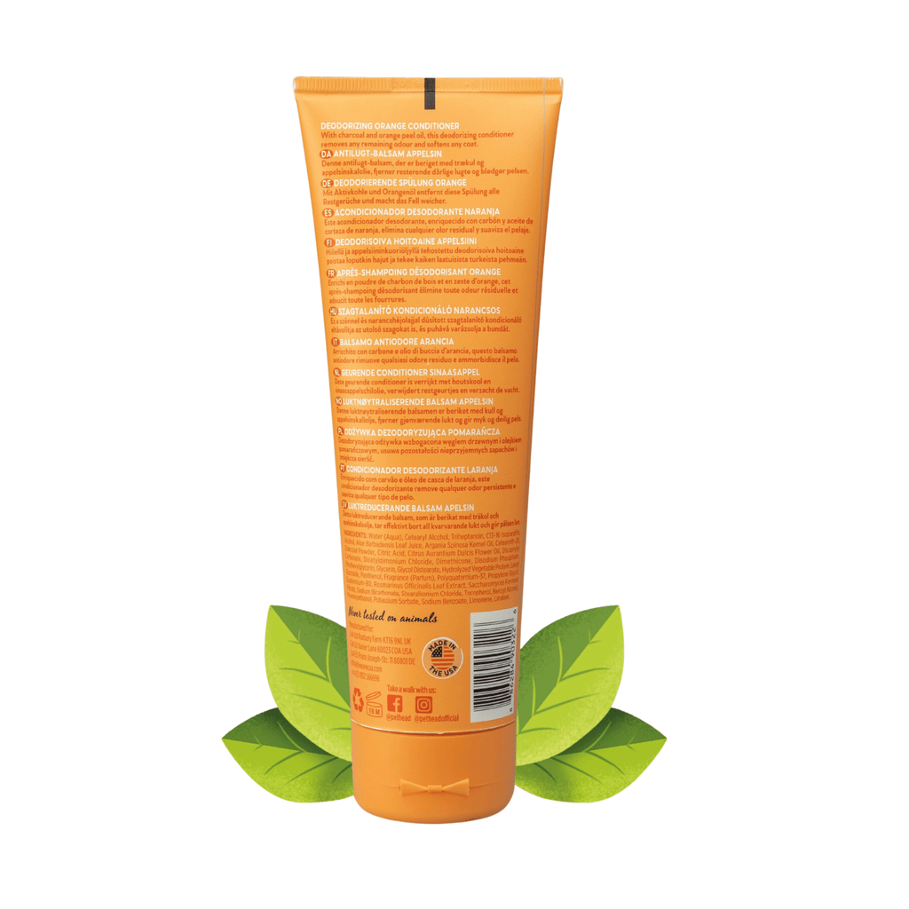 Our Ditch the Dirt, deodorizing collection contains Charcoal powder that works like a magnet to attract dirt and oils. Orange peel oil helps to eliminate the bad smells whilst rosemary leaf extract makes the coat stronger.