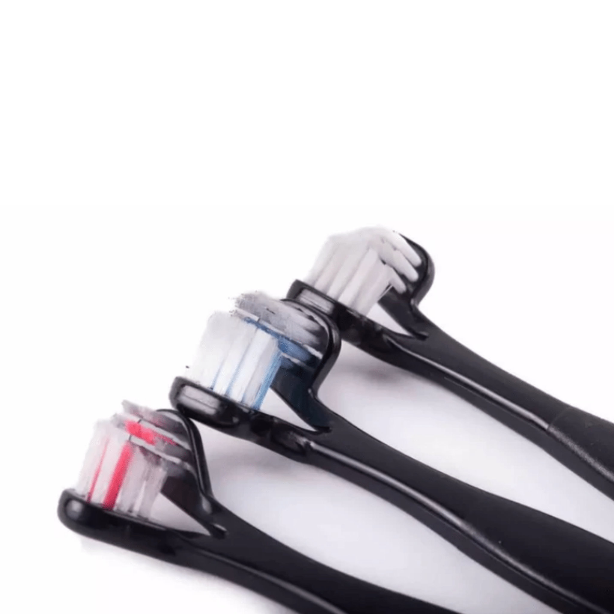 - Brush hugs teeth and will be guided by row of teeth allowing for easy cleaning