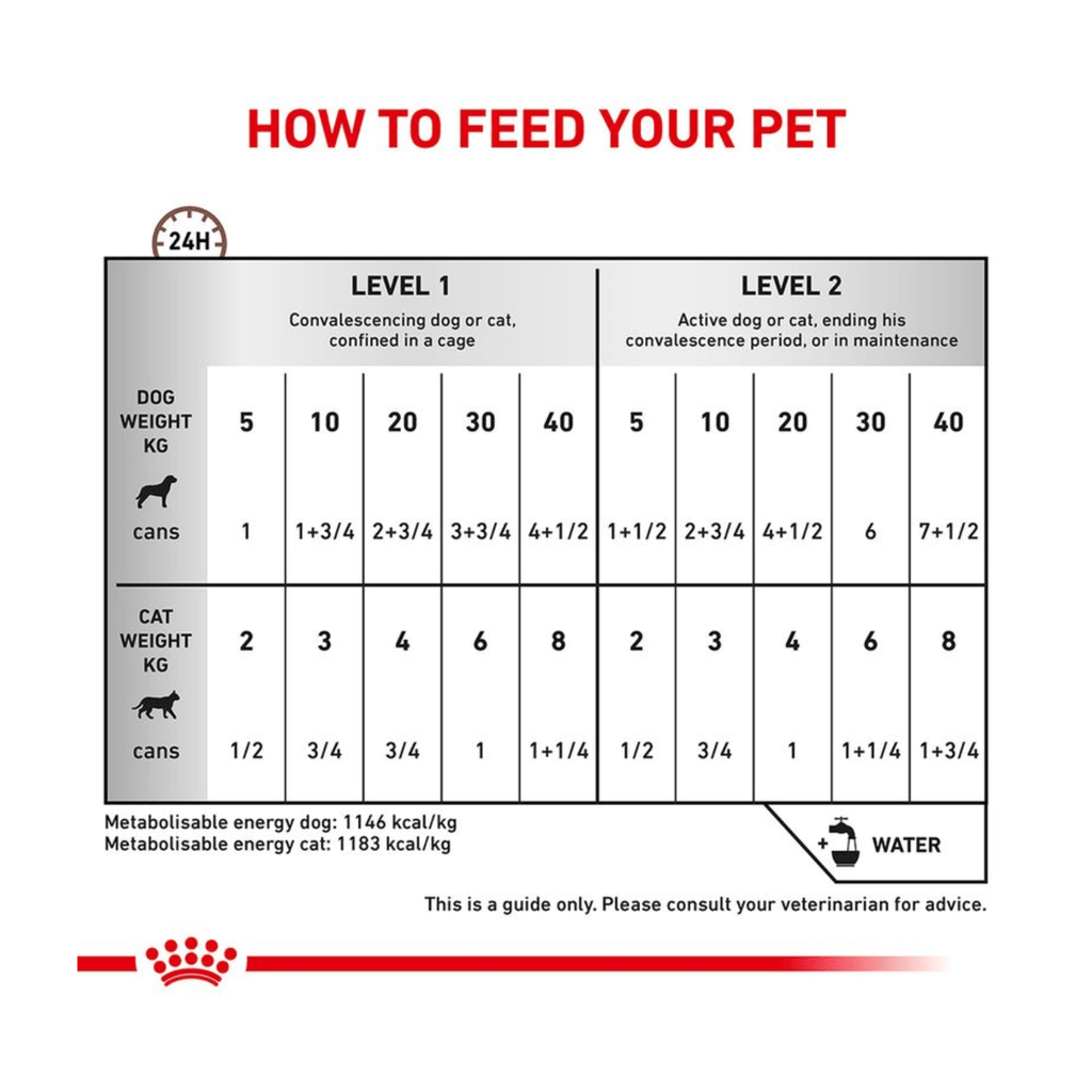 As part of the ROYAL CANIN® Veterinary Health Nutrition range, it is important that this product is only given to your pet when recommended by a veterinary professional. Transitioning your pet from one diet to another should be a smooth and gradual process over a 7–10 day period. Please ensure you follow the correct rationing amount.
