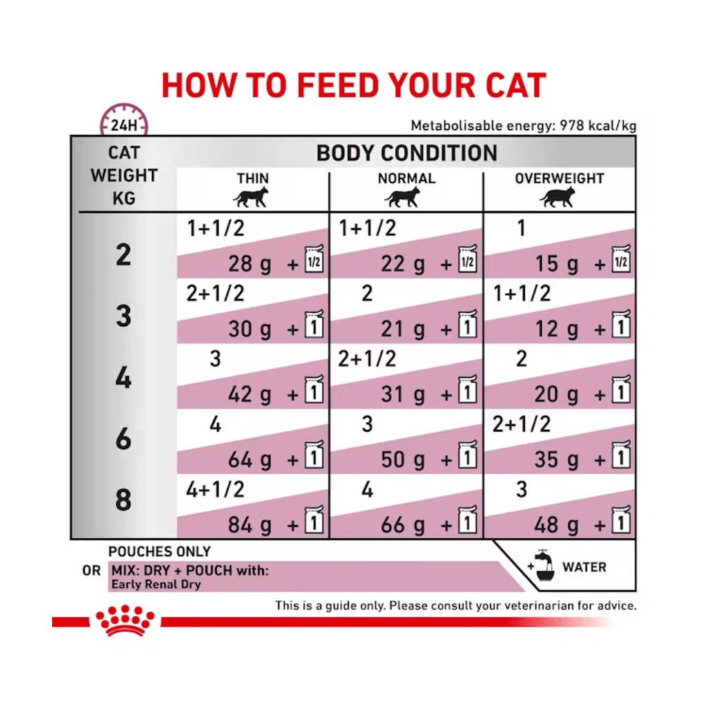 Important to note: Royal Canin are proud to partner with leading veterinary scientists to produce early renal wet cat food pouches. As part of the ROYAL CANIN® Veterinary Range, it is important that this product is only fed to your pet when recommended by a veterinary professional.
