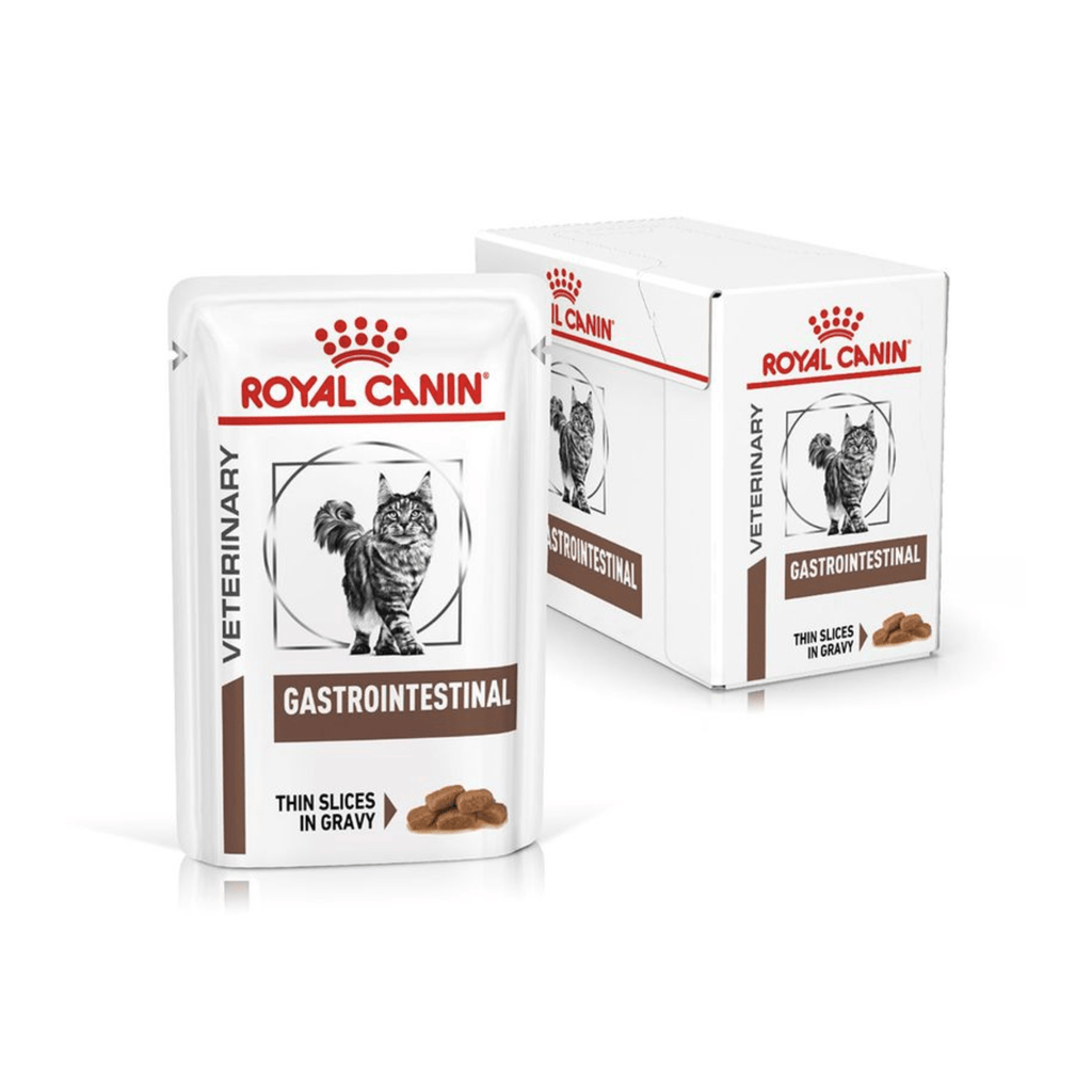 ROYAL CANIN® Gastrointestinal Thin Slices in Gravy is a gastrointestinal wet cat food available in a in tasty gravy and convenient pouch packaging. This diet is suitable for cats with: