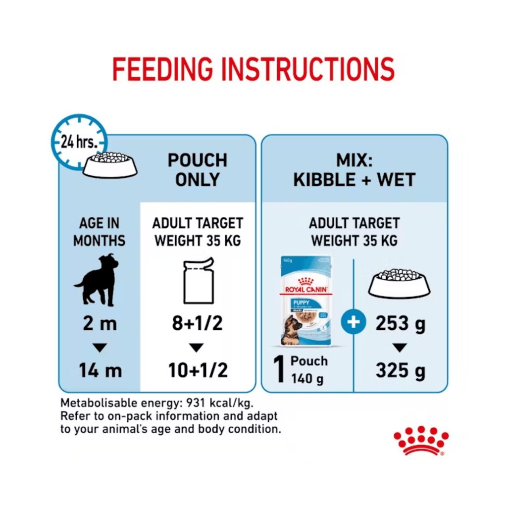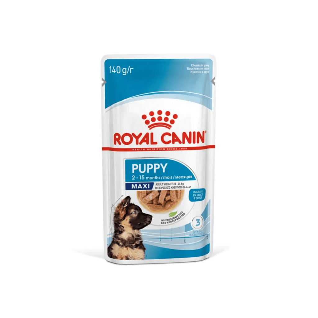 ROYAL CANIN® Maxi Puppy in Gravy has been created to satisfy the most discerning canine palate. This wet food offers your puppy a positive sensory experience, supports healthy hydration and is perfect for mixed feeding with the ROYAL CANIN® Maxi Puppy dry kibble diet.