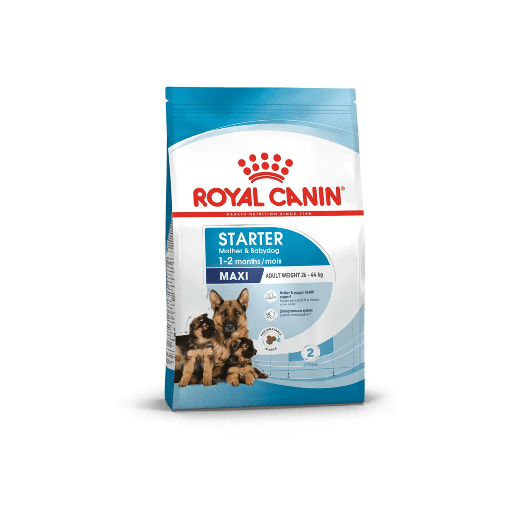 ROYAL CANIN® Maxi Starter Mother & Babydog is specially formulated to support the nutritional needs of new mothers and their puppies. This formula is suitable for large adult dogs that weigh between 26 and 44kg, and for weaning puppies up to 2 months old. Large dogs often have big litters - sometimes of more than 10 puppies - and this is very demanding on their metabolism.