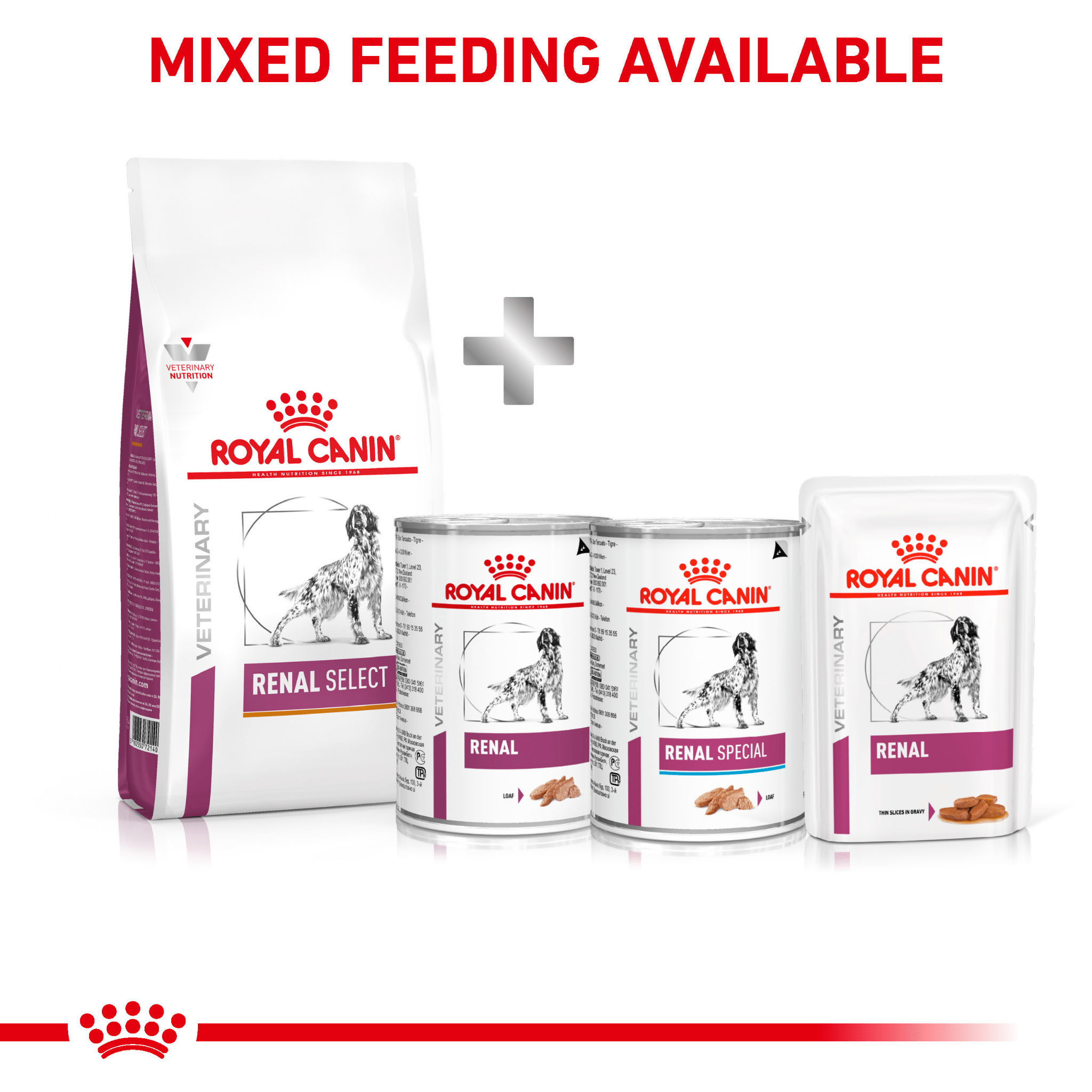 Royal Canin Renal Select Adult Dry Dog Food is suitable for Azotaemic Chronic Kidney Disease (IRIS stage 2* to stage 4) or Chronic Kidney Disease with proteinuria (IRIS stage 1 to 4). This product is not suitable in cases of growth, gestation/lactation or Pancreatitis. This product should only be fed based upon the specific recommendation of your vet.