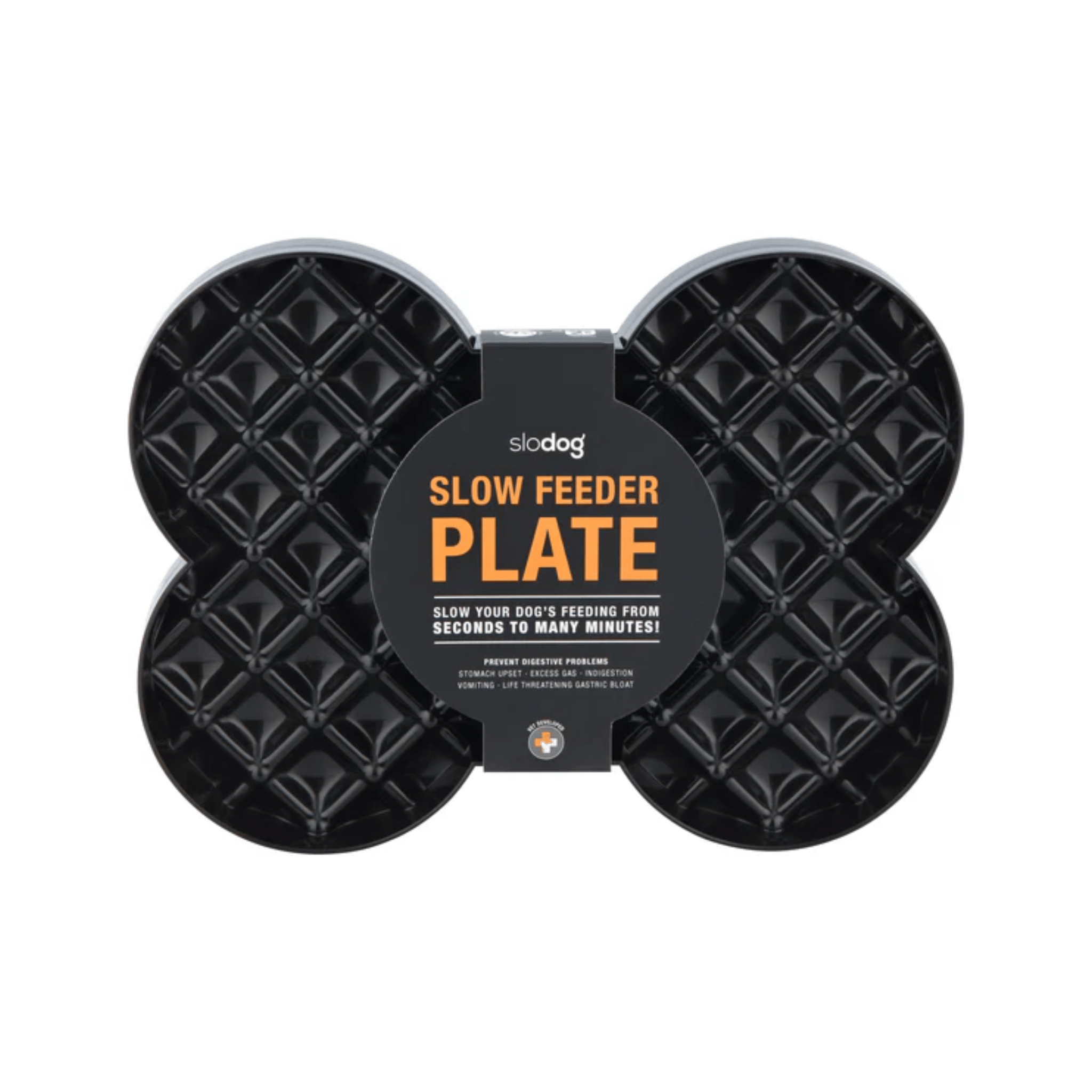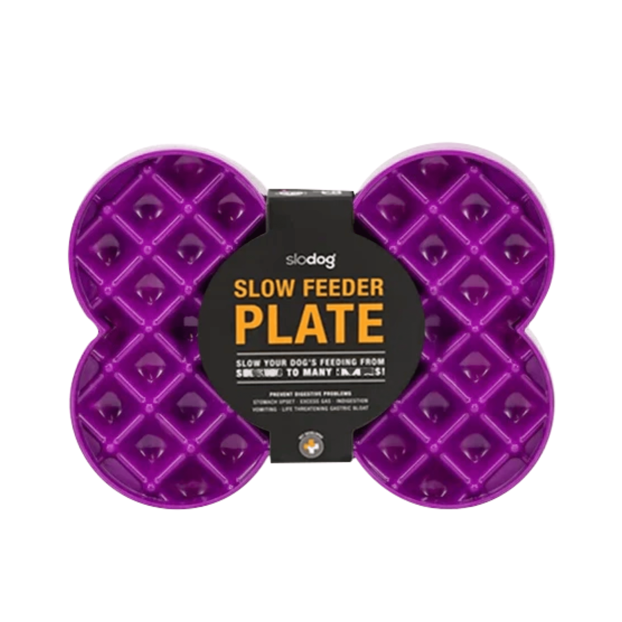 The Hyper Pet SloDog Slow Feeder™ plate is a unique approach to slow feeding and anti gulping meal time. Most slow feeders work by adding obstructions or maze like structures that make it difficult and confusing for dogs to chase and try to access their food, causing stress and anxiety. SloDog provides much more surface area accessibility for slower feeding, enabling your dog to see and access food easily. Food does not have to be chased, avoiding unnecessary frustration. SloDog is designed to split your pets’ meal into multiple mini meals by spreading the measure over lots of small shallow pockets, preventing gulping and extending feeding time.