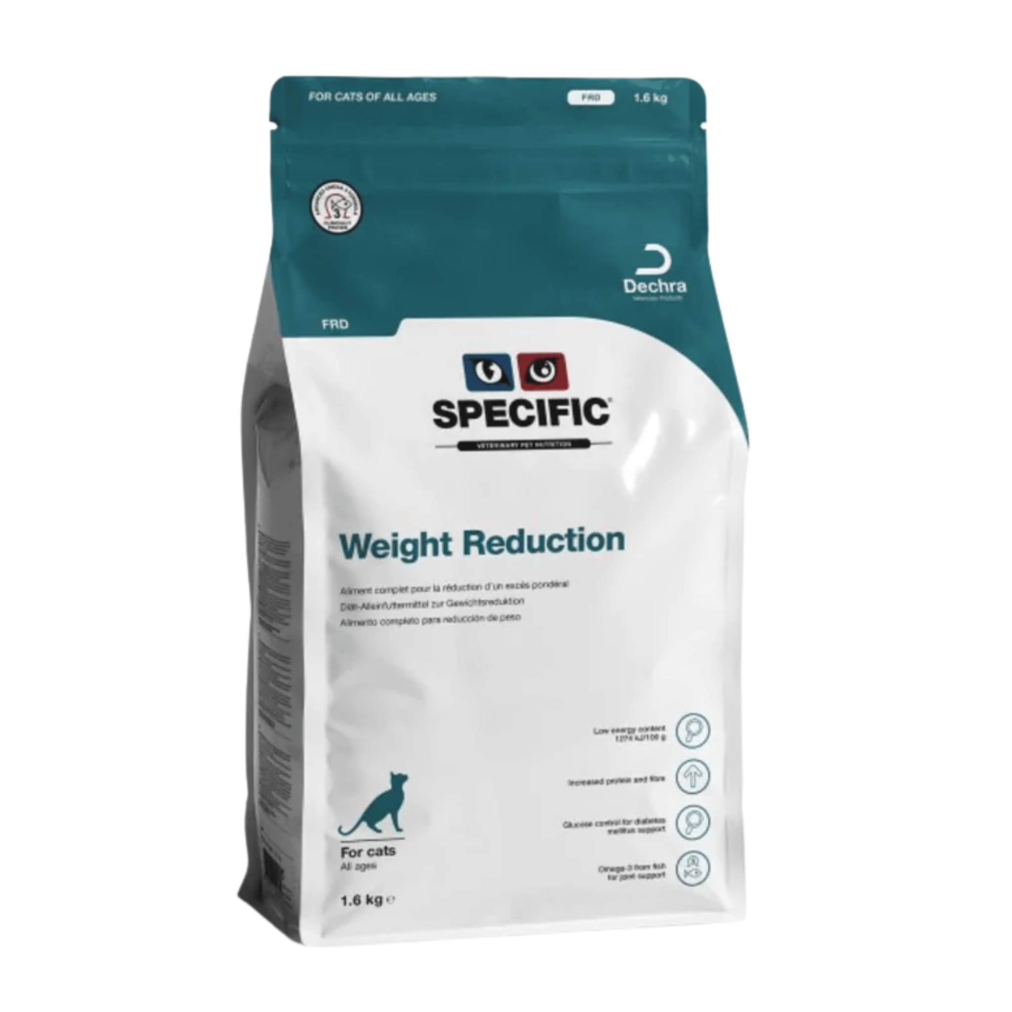 SPECIFIC™ Weight reduction is a quality dry food that designed to help your cat lose weight. A diet low in fat and calories, but high in fibre and protein. This means you can feed your cat a large tasty amount of food, to satisfy their appetite, while still helping them to lose weight.For adult cats needing to lose weight.