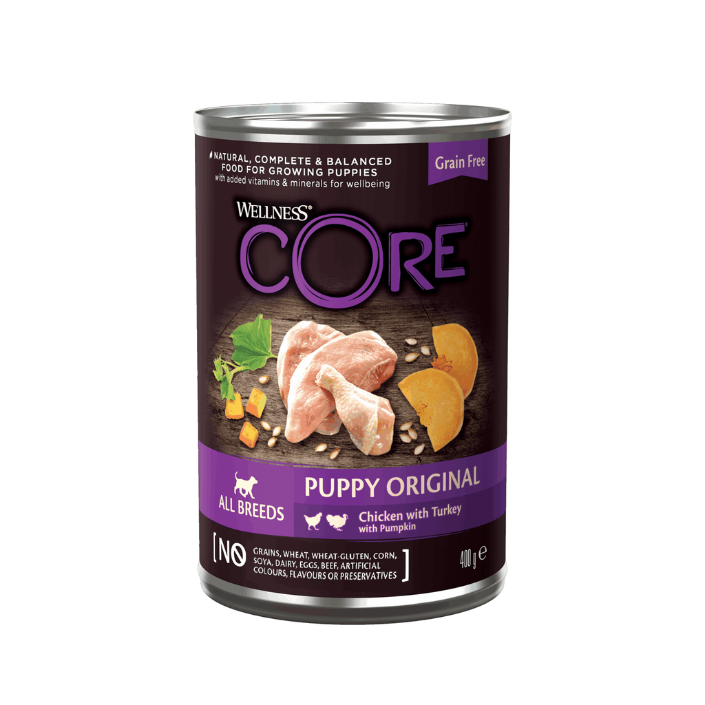 Our Wellness CORE Puppy Original Chicken & Turkey with Pumpkin is a delicious grain free recipe which provides a all natural, complete & balanced meal to your puppy: crafted with 95% of animal ingredients from a double protein source and fortified with vitamins and minerals, it ensures your puppy has the best start in life.